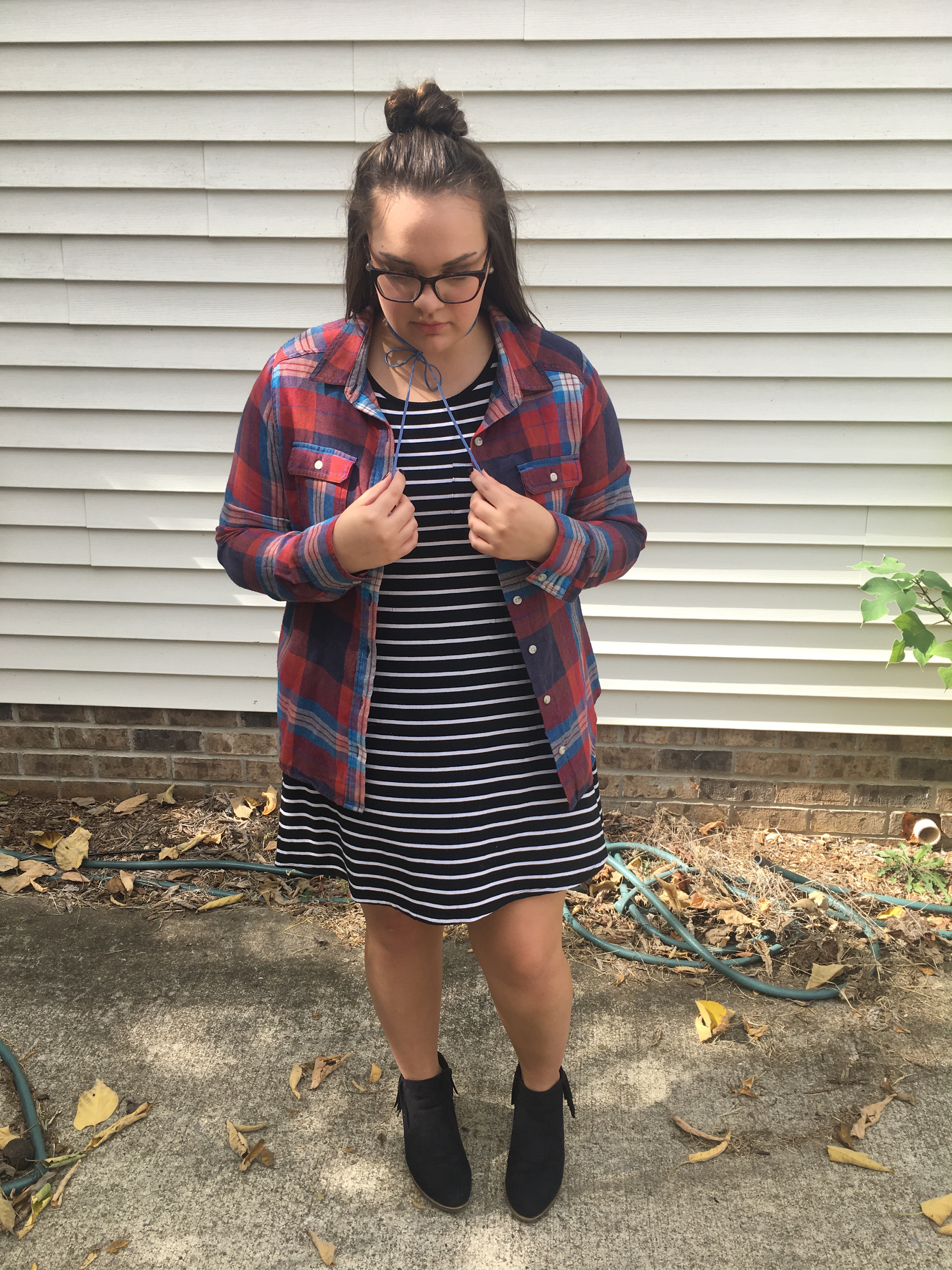 As I’ve mentioned I want to dress for fall. Nothing screams fall like a flannel right? I’m all about pattern mixing, so I paired the stripes and plaid and wore them together. My brother said he hates it, but I love it so what else matters? 😜