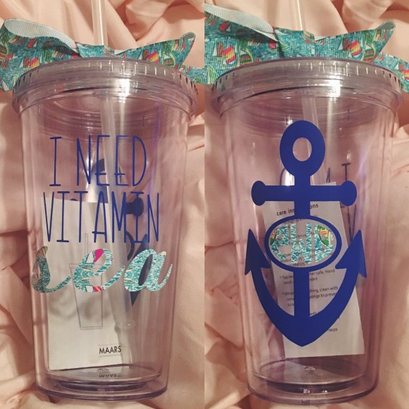 Probably my favorite piece in the box was the tumbler reading “I need vitamin sea” in Lilly inspired font. It’s super cute! & the back has an anchor and my monogram. I love love love it.