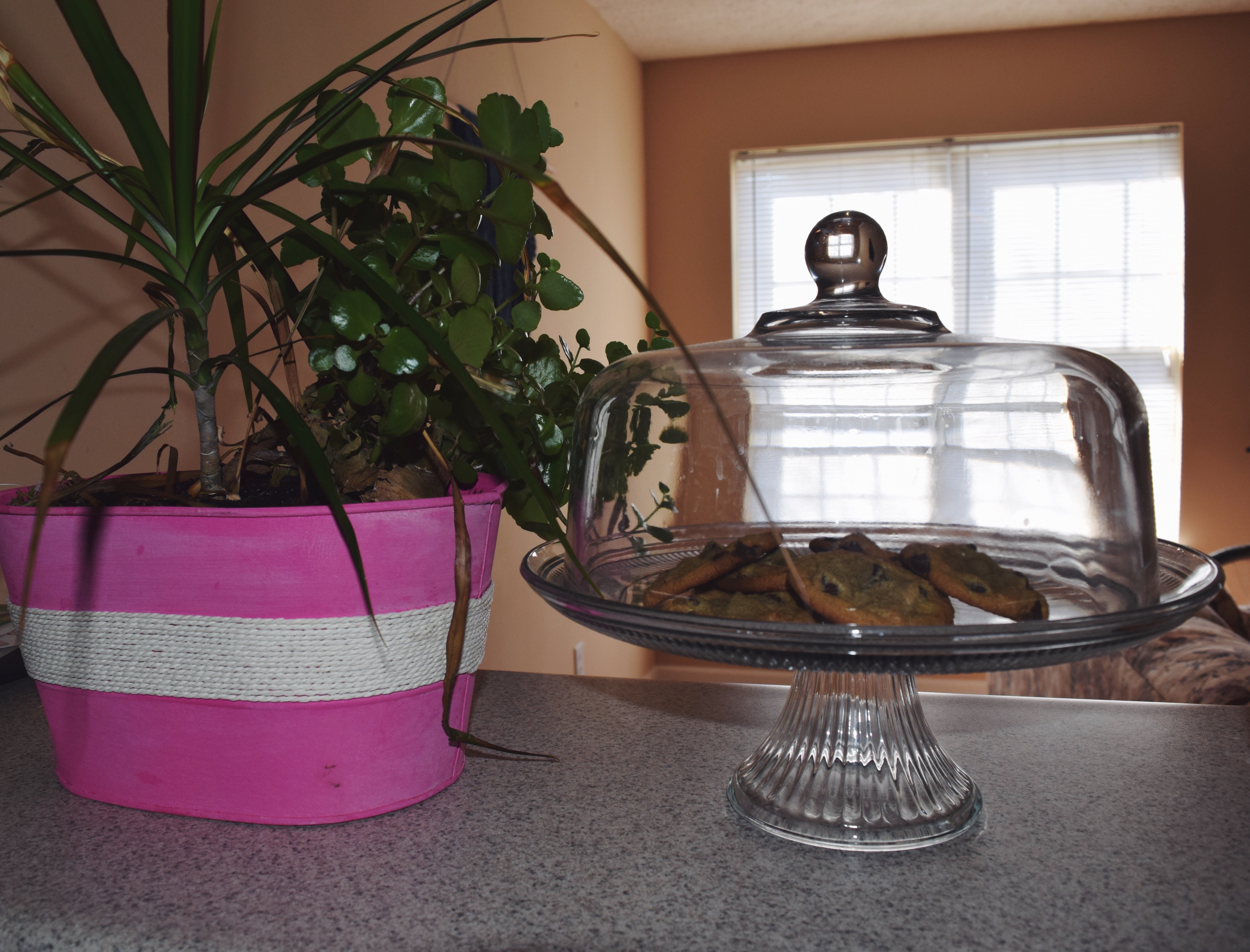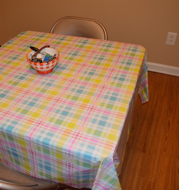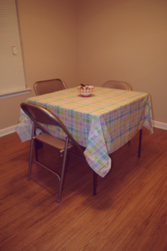 We have a dining room, but right now our table is a card table with folding chairs. I didn’t lie y’all. The place is incomplete. Definitely makes me take advantage of all the comfort when I go home. The tablecloth is from walmart & the candy dish is The Pioneer Woman. I definitely will be getting a dining room table, curtains, and some nice art for this room too in the future, but we have the basics for now.