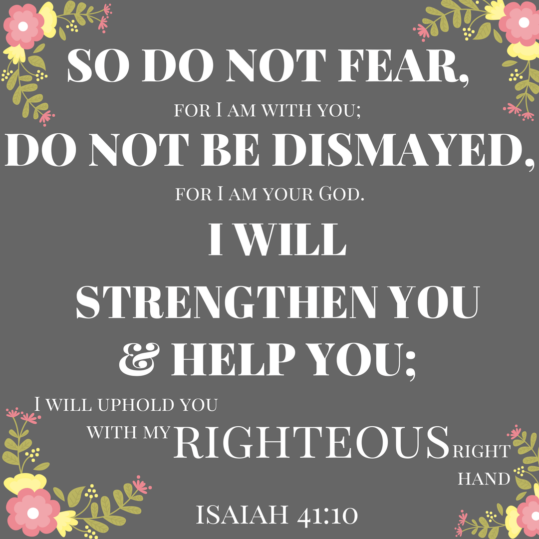 Fear not, for I am with you; be not dismayed, for I am your God; I will strengthen you, I will help you, I will uphold you with my righteous right hand. – Isaiah 41:10